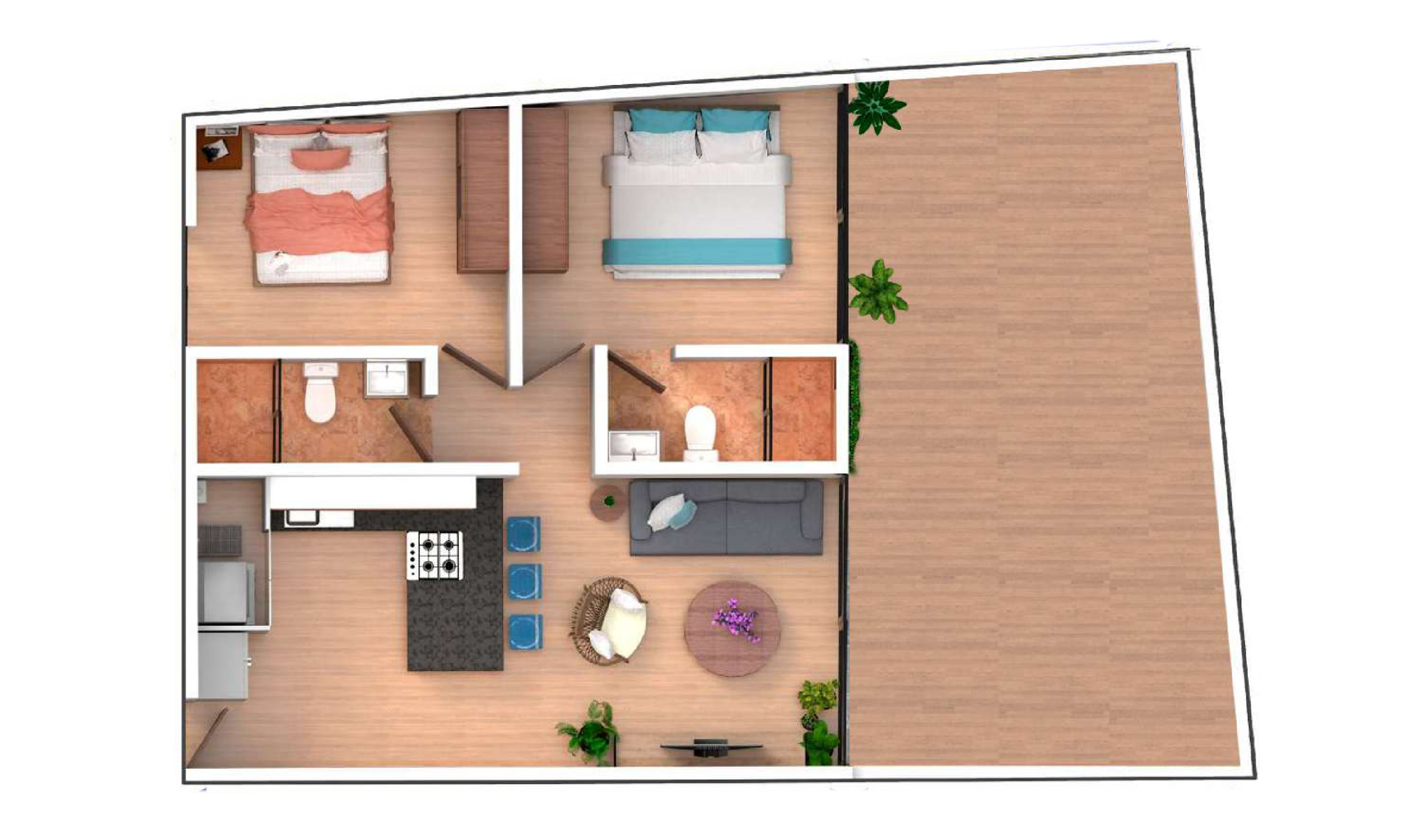 - 2 Bedrooms